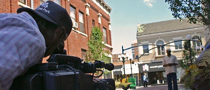 The cable franchise holder provides portable cameras, editing equipment and a studio at a regional location. Residents and employees of non-profit organizations based in Oak Park can become qualified users of public access by taking classes offered by the cable company.