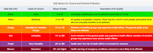 The AQI is divided into six categories. Each category corresponds to a different level of health concern. Each category also has a specific color. The color makes it easy for people to quickly determine whether air quality is reaching unhealthy levels in their community.